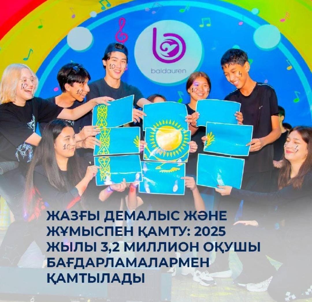2025 жылдың жазғы кезеңінде 3,2 миллион оқушыны сауықтыру, демалыс және жұмыспен қамтудың түрлі бағдарламаларымен қамту жоспарлануда. Жұмыстар тоғыз мемлекеттік органның бірлескен жоспары шеңберінде жүргізіледі. Республикалық және өңірлік штабтар құрылып, балалар демалысын ұйымдастыру бойынша бірыңғай әдістемелік ұсынымдар әзірленді.