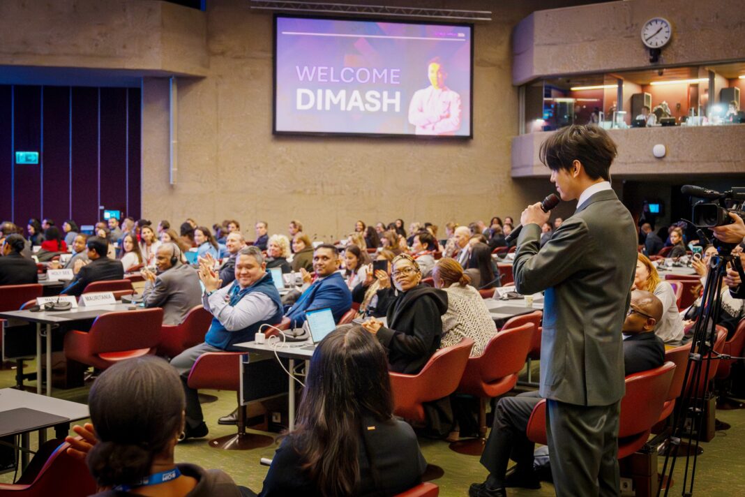 2025 жылғы 8 желтоқсанда өткен сессия барысында Димаш ХКҰ-на мүше мемлекеттер делегациялары мен қызметкерлері қатысқан аудитория алдында өзінің «S.O.S d’un terrien en détresse» атты танымал туындысын орындады. Оның гуманитарлық қызметін бағалай отырып, ХКҰ Димашқа «Stranger» туры кезінде Ұйым миссиясын ілгерілетуге бағытталған қызметі, сондай-ақ қоныс аударған және осал топтармен ынтымақтастыққа шақырған үндеу-қаракеттері үшін алғысын білдірді.