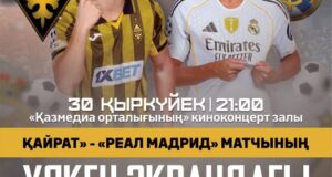 30 қыркүйек күні қазақстандық «Қайрат» футбол клубы УЕФА Чемпиондар Лигасының негізгі кезеңінде атақты испаниялық «Реал Мадрид» командасымен кездеседі. Бұл туралы Qazsport телеарнасы хабарлады. Еліміз үшін маңызды ойынды «Қазақстан» телерадиокорпорациясының «Qazaqstan» және «Qazsport» телеарналары тікелей эфирде көрсетеді. Сонымен бірге Корпорация елордалық жанкүйерлер үшін «Қазмедиа орталығының» киноконцерт залында ашық көрсетілім ұйымдастырады. Шараға түрлі саланың өкілдері, қоғам белсенділері, спортшылар мен қала тұрғындары қатысады. ...
