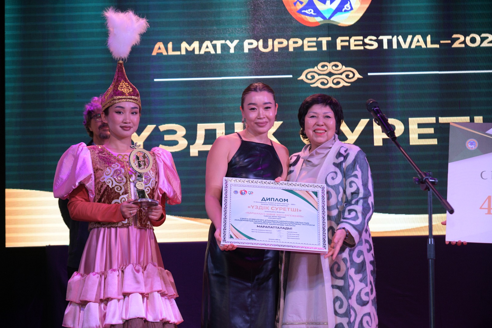 «Үздік суретші» номинациясымен – Сәкен Сейфуллин атындағы Қарағанды облыстық академиялық қазақ драма театры қуыршақ труппасы, «Қаршақыз және 7 ергежейлі» (Қазақстан, Қарағанды);