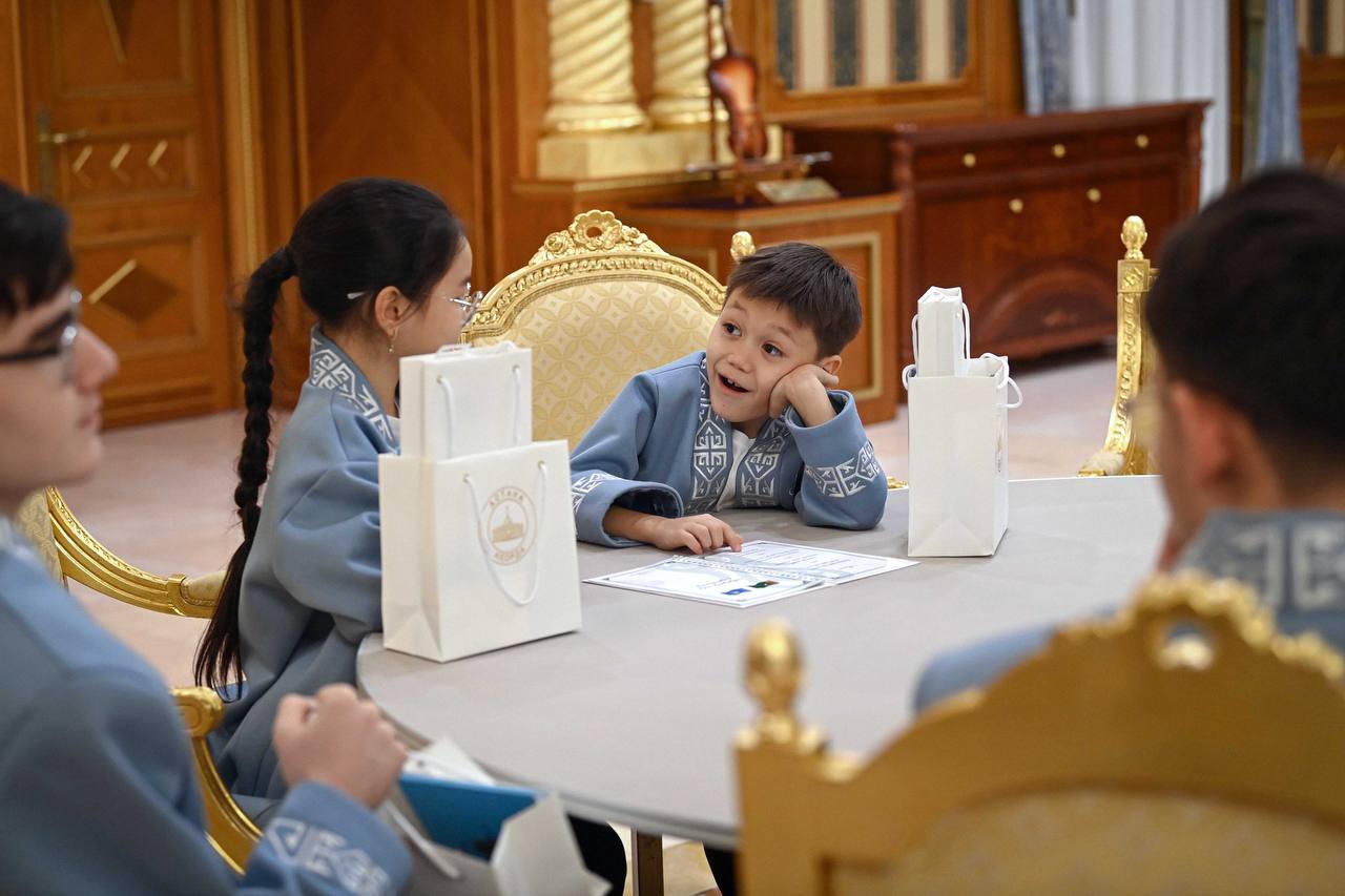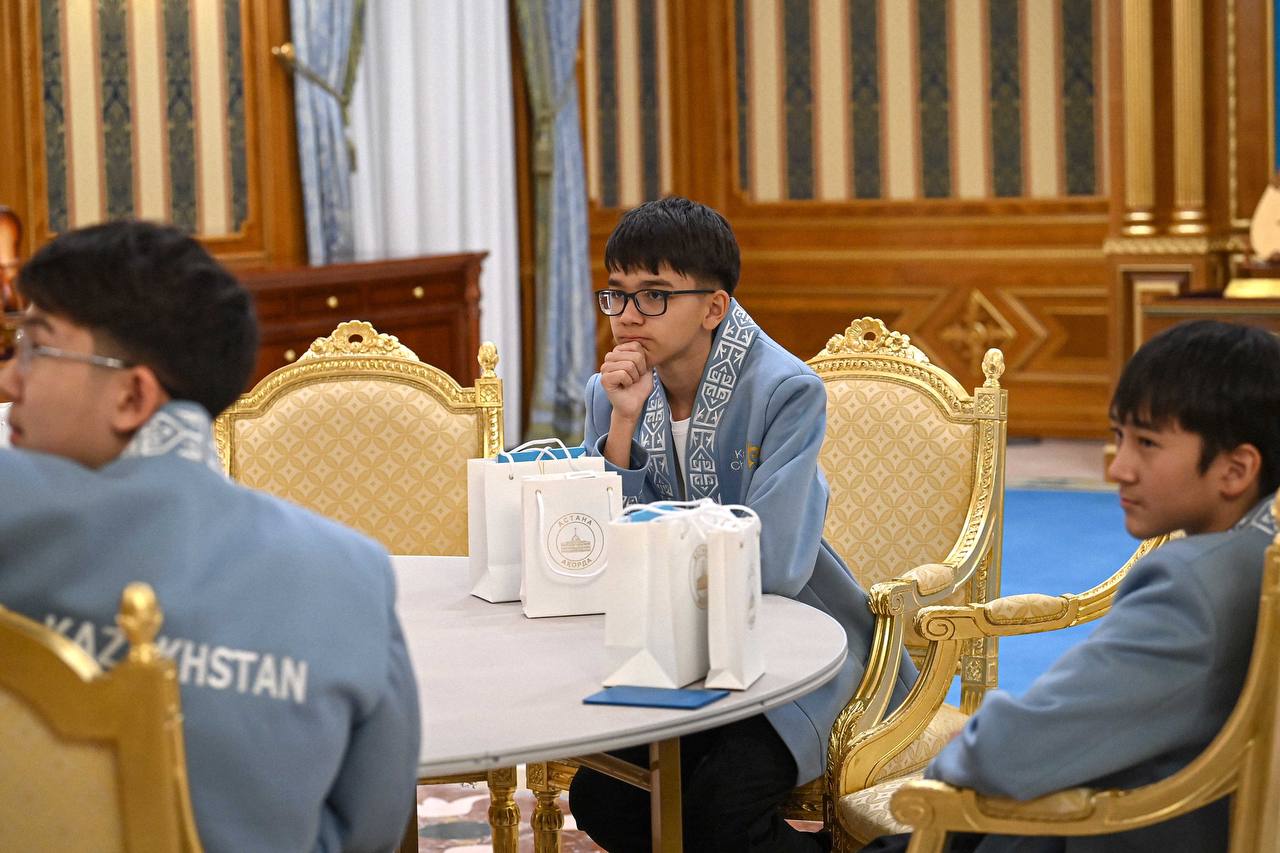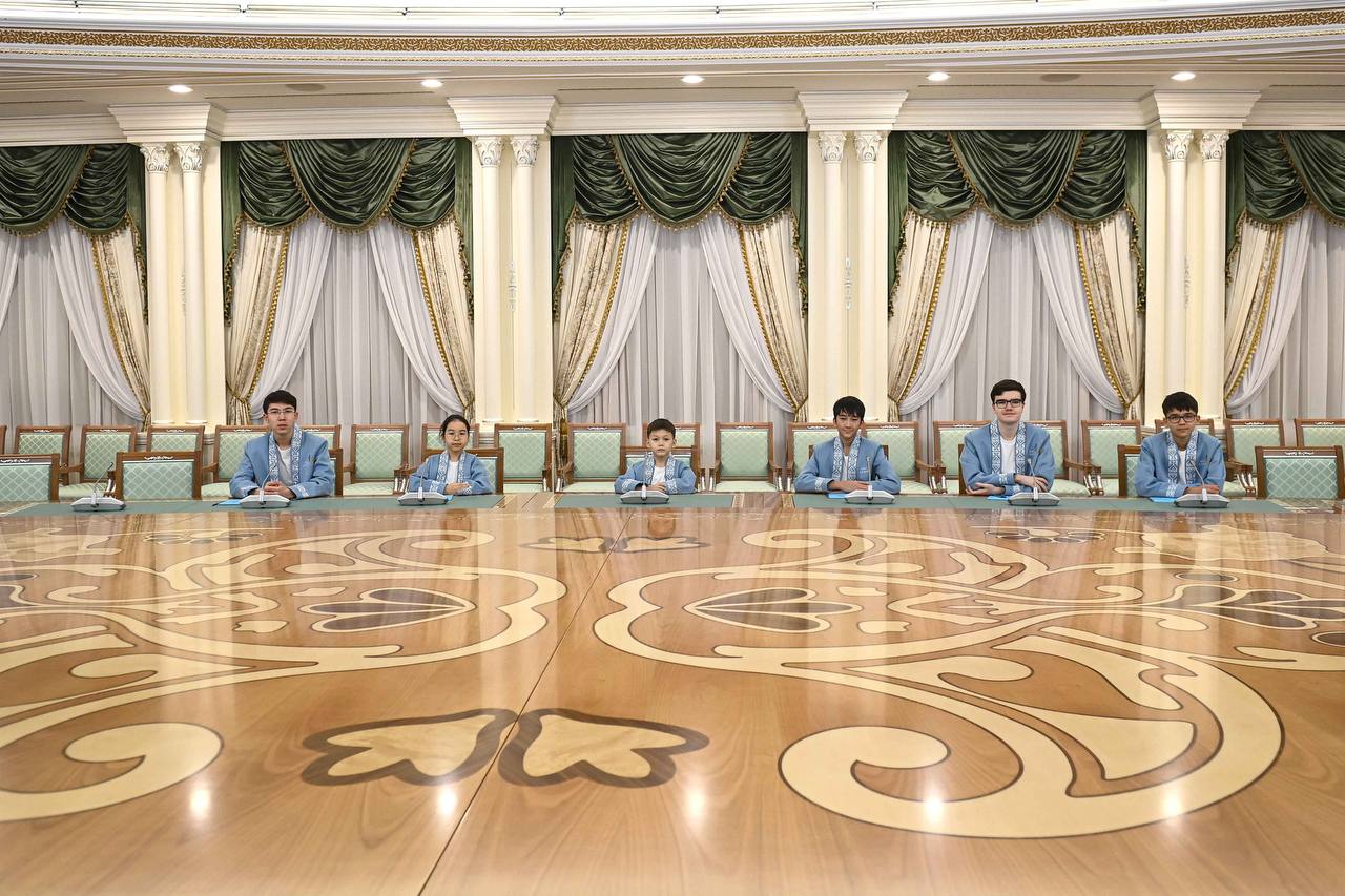 Кездесуге 8 жасқа дейінгі санатта әлем чемпиондары атанған Әдинұр Әділбек пен Алиша Бисалиева, 12 жасқа дейінгі санатта әлем чемпионы болған Данис Қуандықұлы, 14 жасқа дейінгі санатта әлем біріншілігінде жеңіс тұғырынан көрінген Марк Смирнов, 16 жасқа дейінгі санат бойынша әлем чемпионатында алтыннан алқа таққан Эдгар Мамедов, 16 жасқа дейінгі шахматшылар арасында әлем біріншілігінің күміс жүлдесіне қол жеткізген Сауат Нұрғалиев қатысты.Мемлекет басшысының айтуынша, жас спортшылардың жетістіктері халықаралық аренада Қазақстанның мерейін үстем етеді әрі елімізде шахматтың келешегі зор екенін көрсетеді. Президент чемпиондардың биік мақсаттарға ұмтылуы қажеттігін жеткізіп, оларға жарқын жеңістер тіледі.