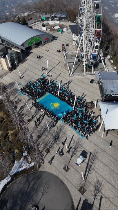 Флешмоб аясында биіктігі 7 метр болатын Қазақстан Республикасының Мемлекеттік Туы көтеріліп, патриоттық әндер орындалды. Бұл ұлттық бірлік пен ортақ жауапкершіліктің айқын көрінісіне айналды.